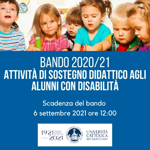 È online il bando dell’Università Cattolica del Sacro Cuore per l’ammissione ai percorsi di formazione per il conseguimento della specializzazione per le attività di sostegno didattico agli alunni con #disabilità – a.a. 2020/21.
