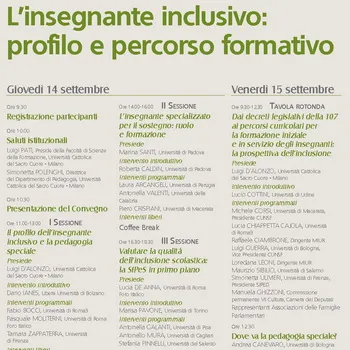 Congresso SIPeS “L’insegnante inclusivo. Profilo e percorso formativo” dal 14 al 15 Settembre presso l’Università Cattolica del Sacro Cuore di Milano presso l’Aula Magna.