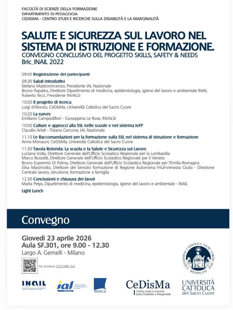 Il progetto, finanziato dal bando INAIL BRiC 2022, ha visto una collaborazione d’eccellenza tra il CeDisMa (Università Cattolica), INVALSI e IAL Nazionale.